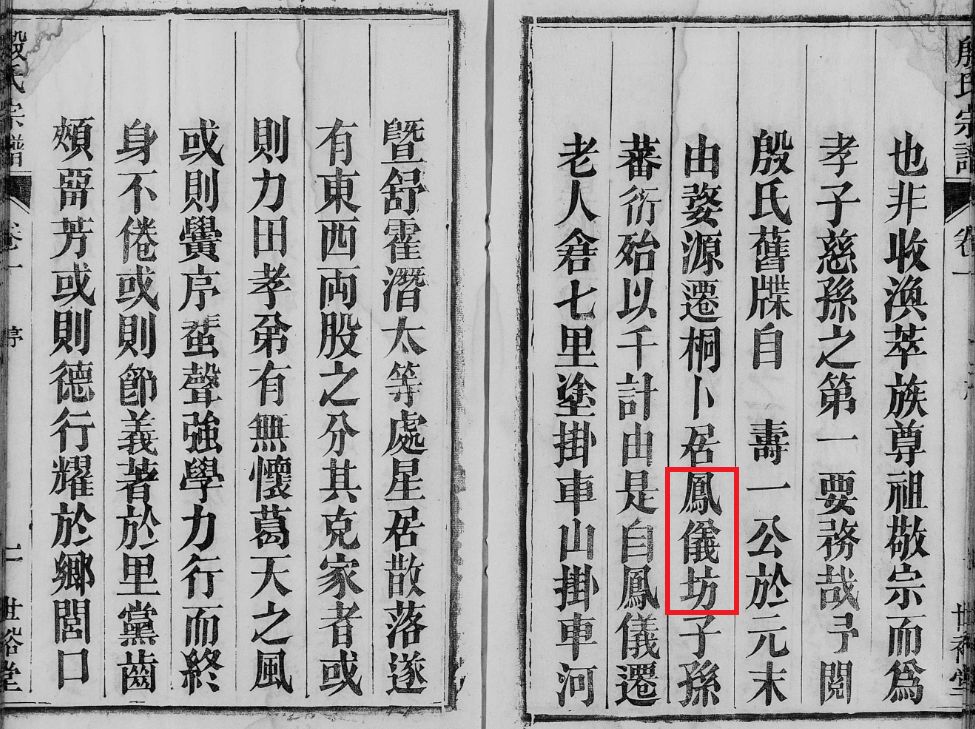 汝南殷氏,谱载“自寿一公元末由徽州婺源渡江迁桐,卜居于凤仪坊,置田列籍,是为迁桐始祖。”
