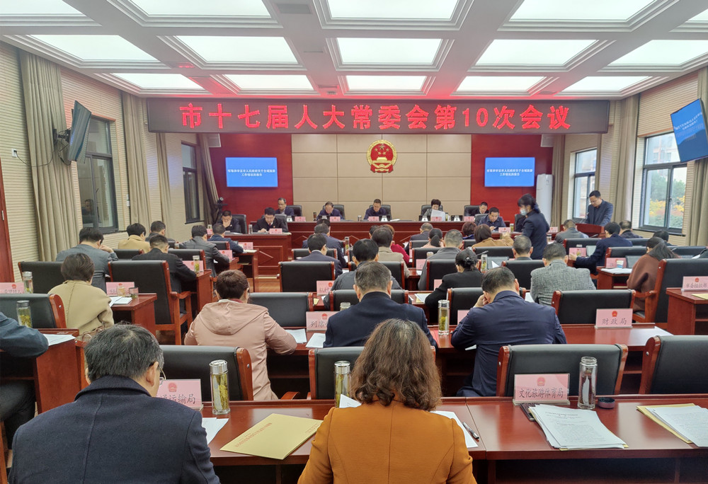 11月22日,市十七届人大常委会第10次会议召开。市人大常委会主任江学潮主持会议,市人大常委会副主任陈玉莲、程赟、汪名东、詹向前出席会议。市委常委、常务副市长桂稳成应邀列席会议。