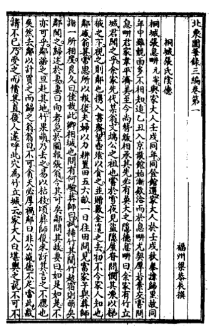 桐城张息畊(元宰)①与家大人壬戌同年。同登馆选。家大人于壬戌秋奉讳归里。故同年中虽觌面多不相知。迨乙丑。入京散馆。始渐款洽。而于息畊尤契厚。若素交。尝问息畊:君家韦平济美。至今尚簪蔽相承。其先必有莫大之隐德。